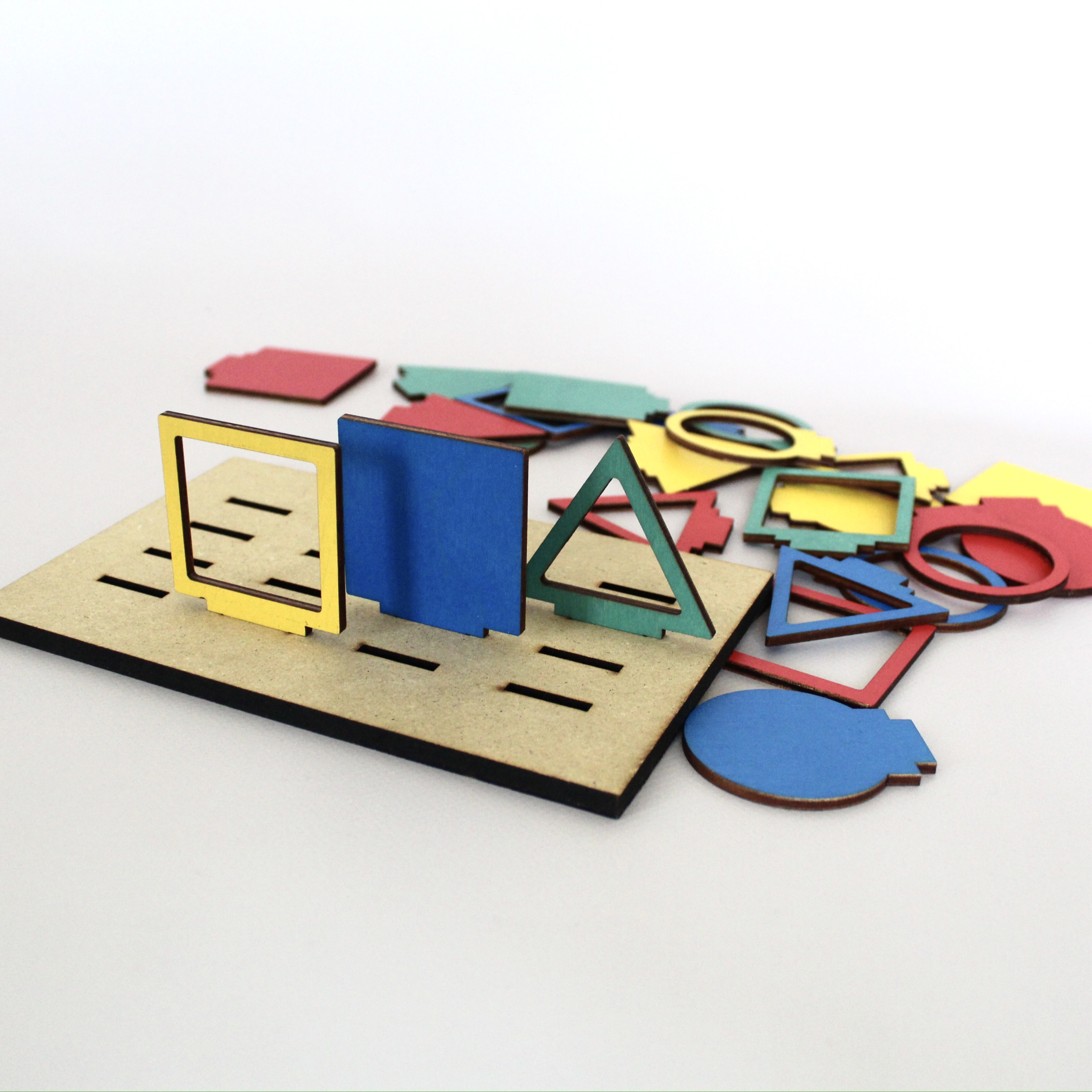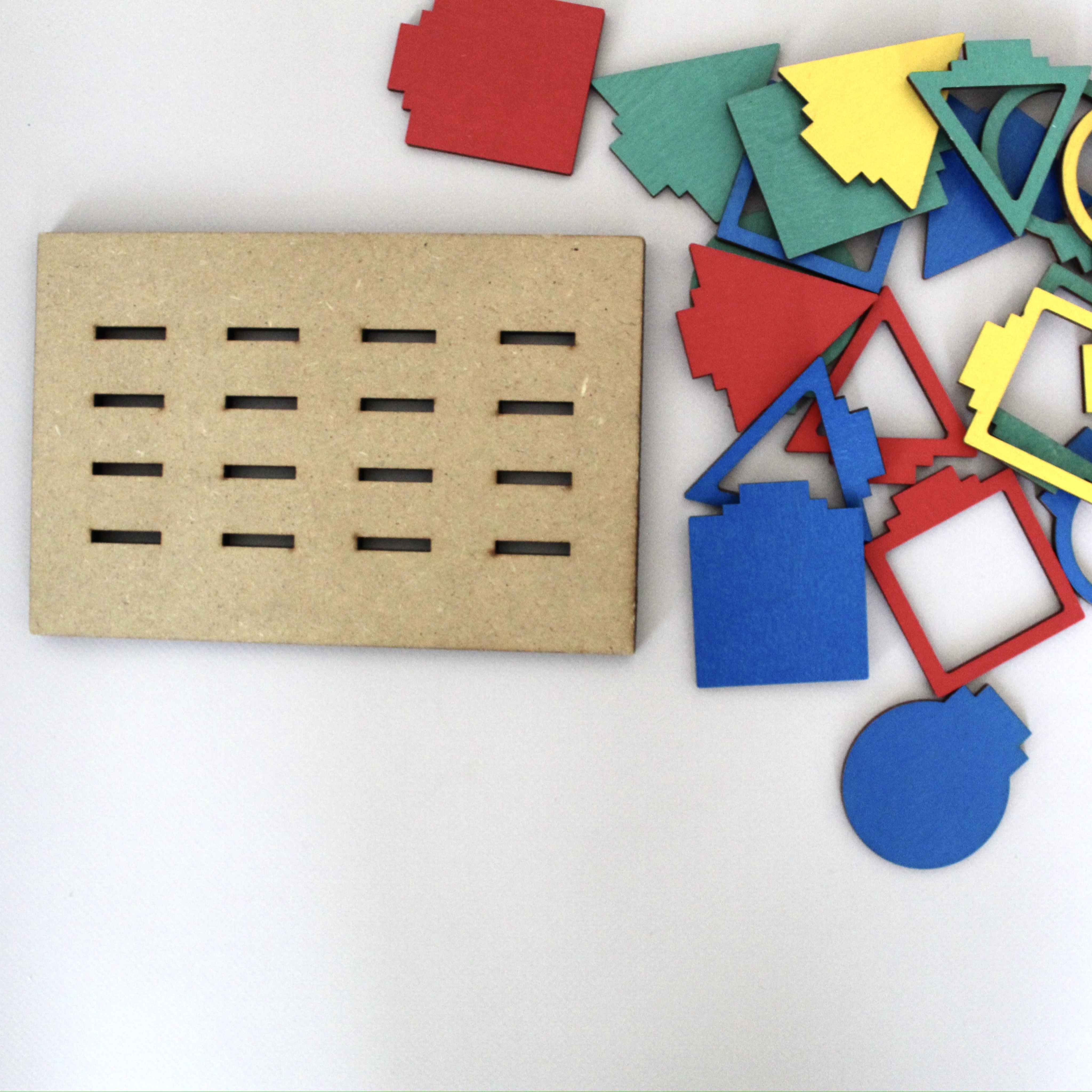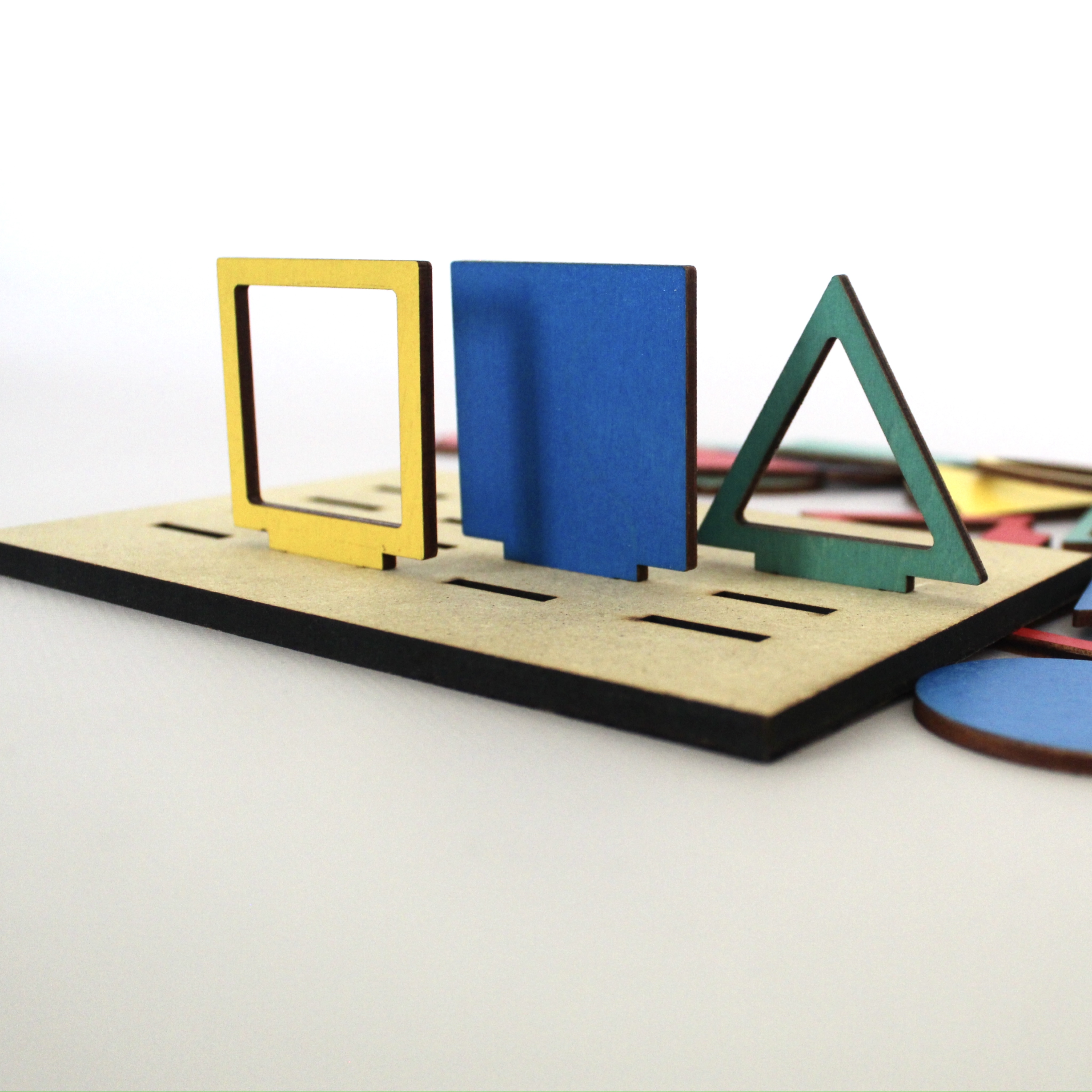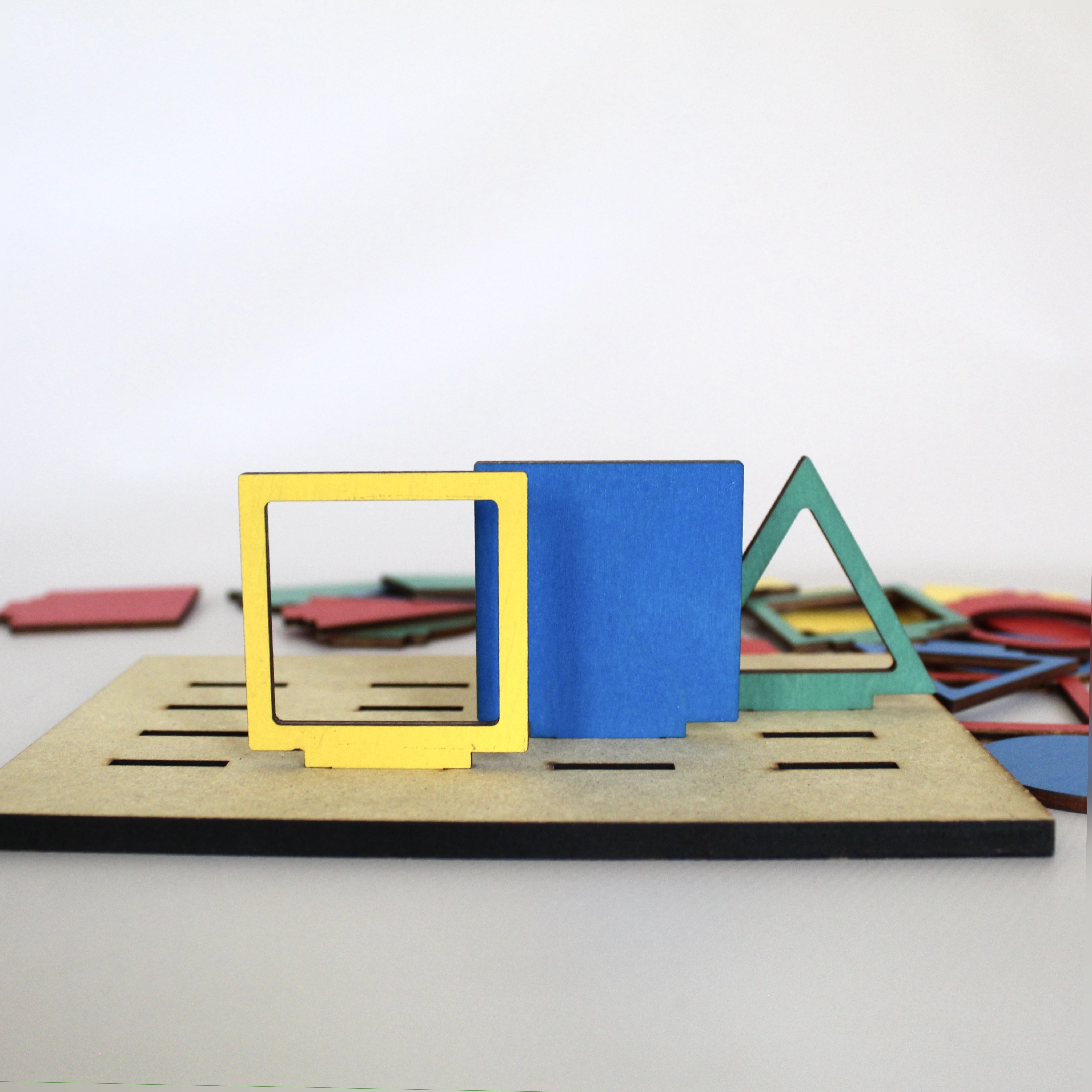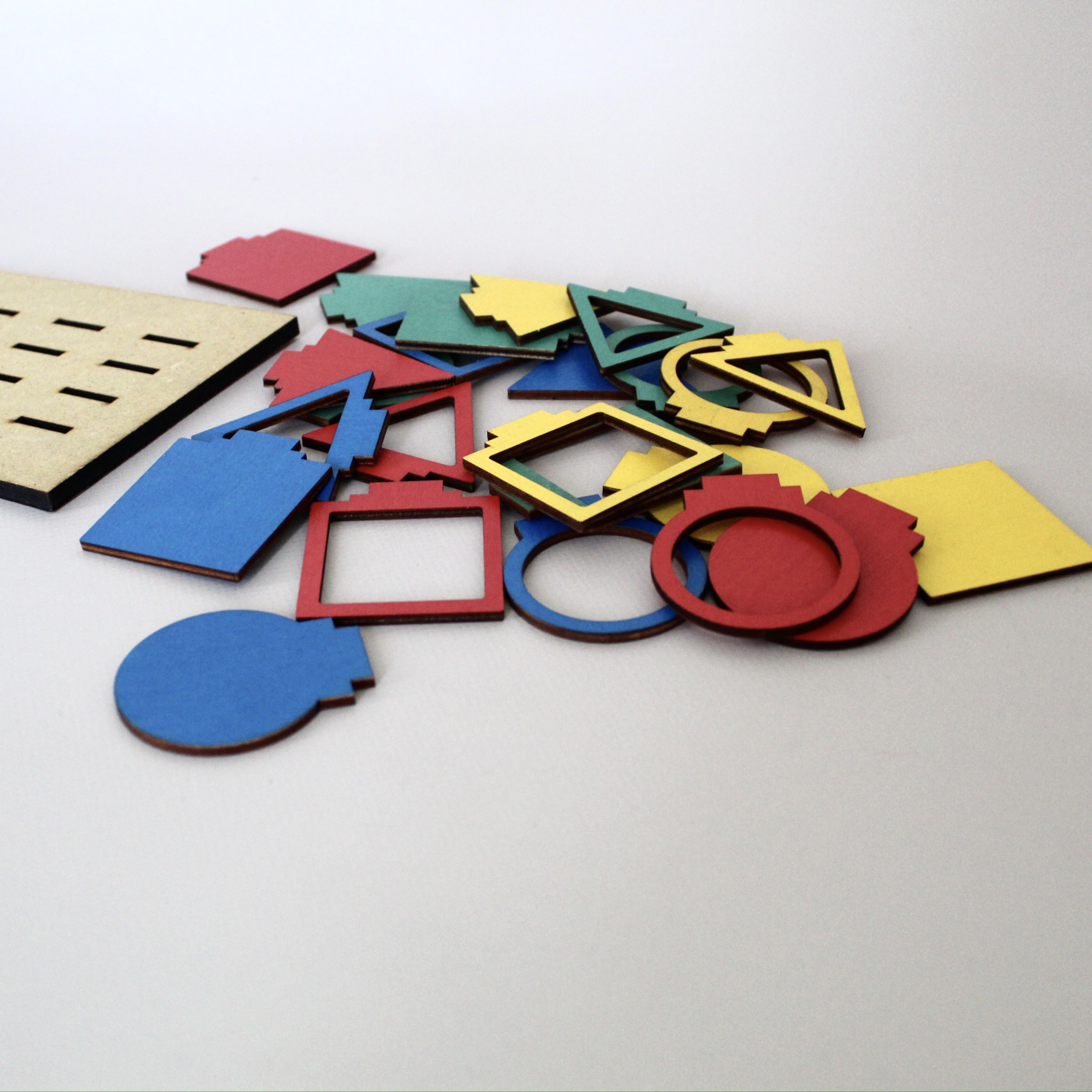 Іграшка для розвитку дрібної моторики має декілька варіантів використання. Наприклад, можна покласти перед дитиною картку та всі наявні геометричні фігури й поставити завдання: орієнтуючись на карту, вибрати потрібні фігури за формою та кольором, розмістивши їх на спеціальній підставці. Або ж можна грати за мовною інструкцією: прохати дитину поставити жовте коло ліворуч від червоно квадрата і т.д.